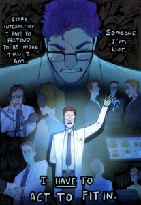 In psychology and sociology, masking, also known as social camouflaging, is a defensive behavior in which an individual conceals their natural personality or behavior in response to social pressure, abuse, or harassment.